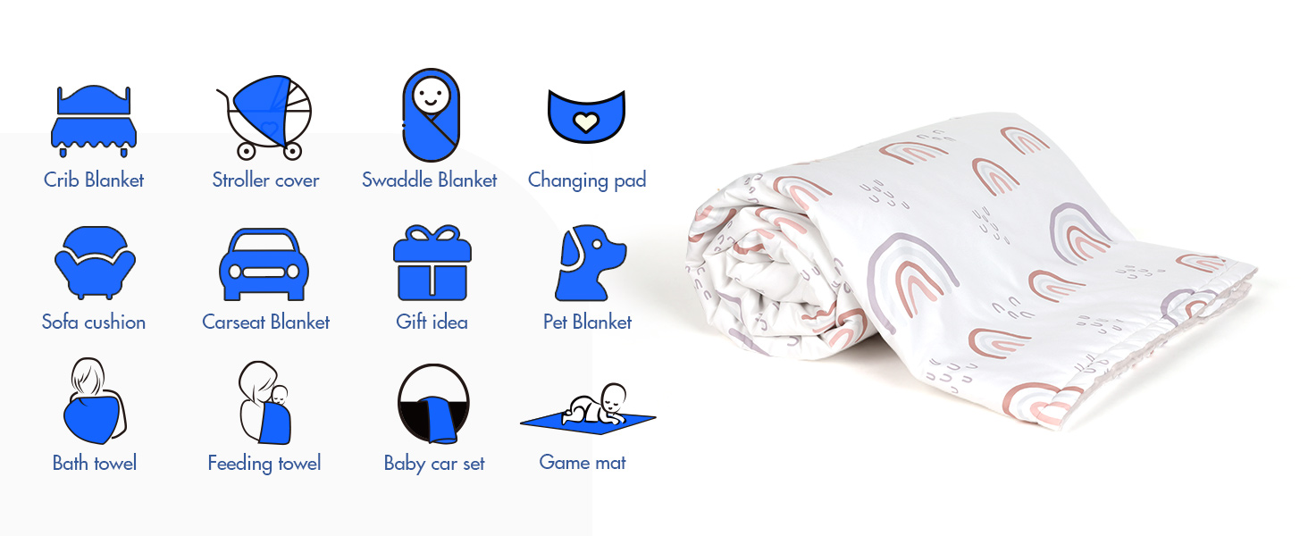 Our 30*40inch baby blanket is made from 100% premium plush polyester fabric, not only super soft and comfortable but also lightweight and easy to use. Enough warm but not too hot, so that creates a warm environment for your little one after a shower or it's time to bed, keep your baby stay warm throughout all the time.